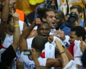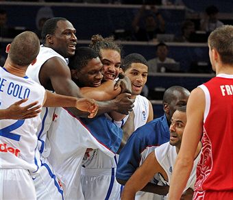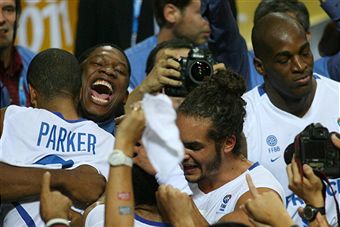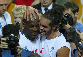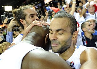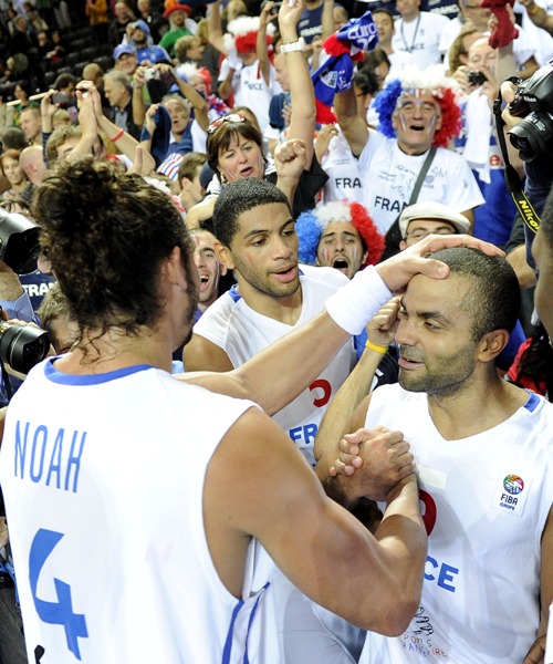 Eppure. Un eppure c’è: se da un lato la Spagna non ha che un solo risultato a disposizione (per gli iberici, il secondo posto sarebbe meno di quanto le aspettative portassero a chiedere: è partita, la Spagna, per vincere l’oro), i francesi possono vivere in maniera più tranquilla in vista del match decisivo. Non si pretende l’oro e già l’argento quale minimo risultato è il modo per eguagliare il miglior piazzamento ottenuto nella storia (1949). Ma la voglia di compiere l’impresa, c’è eccome. Anche per questo l’immensa gioia transalpina alla sirena conclusiva della semifinlae contro la Russia (giubilo che vi mostriamo tutto per intero) è uno spettacolo nello spettacolo che ha dato vita a una mezza festa anticipata. Gli abbracci e le congratulazioni tra giocatori, lo sventolio di drappi con le effigi nazionali da parte del pubblico, la carica dei cestisti più rappresentativi nel correre ad abbracciare tutti gli uomini della panchina. Cose significative.
