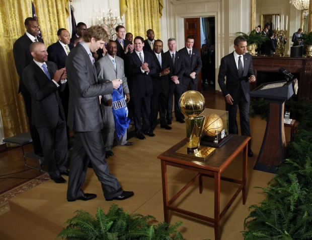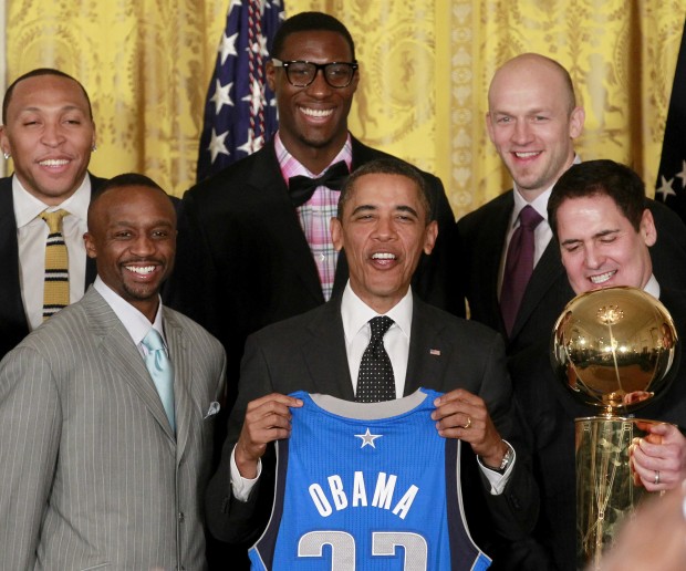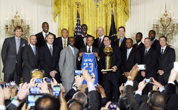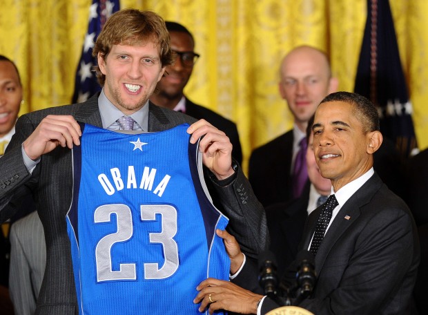 In virtu di campioni Nba della stagione 2011 – e secondo prassi consolidata negli Stati Uniti – il roster dei Dallas Mavericks è stato ricevuto oggi alla Casa Bianca dal presidente americano Barack Obama cui i texani, capitanati da Dirk Nowitzki, hanno donato una maglia con il numero 23.