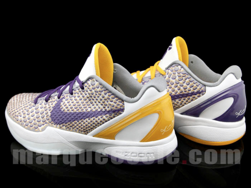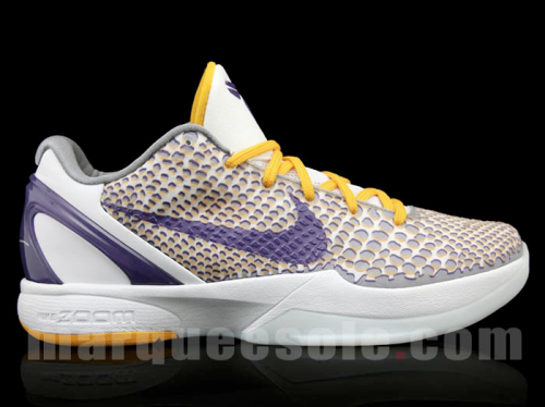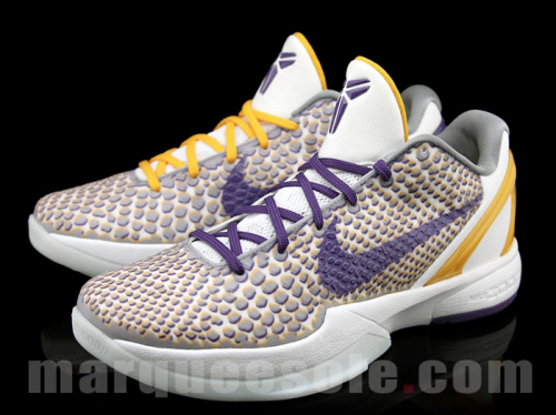 Nike Kobe 6 Lakers 3DNel giorno del compleanno di Kobe Bryant (auguri, campione!) spuntano in rete le prime immagini dell’ennesima variante delle fortunate Nike Kobe 6, le scarpe ufficiali della stella dei Lakers.